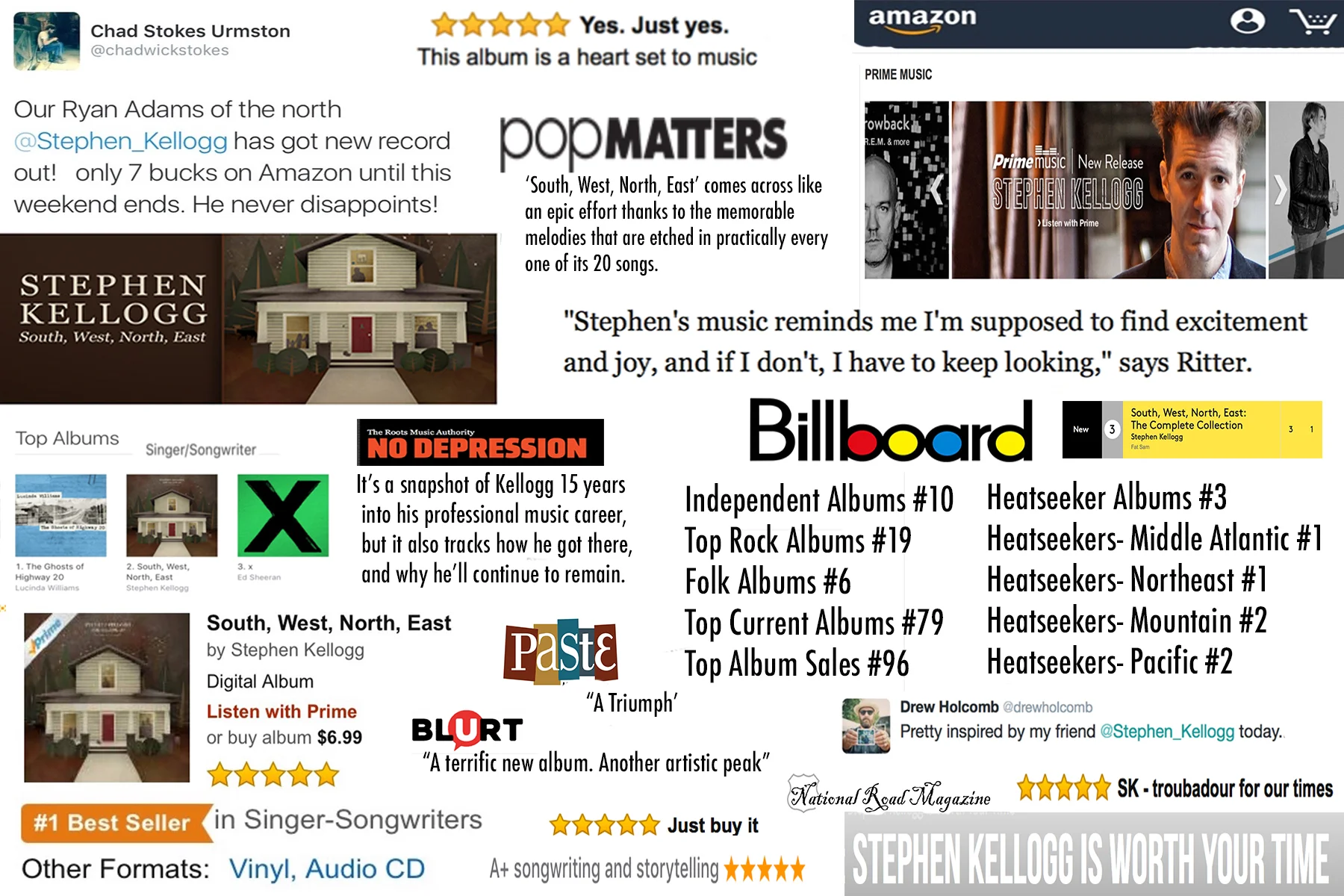 Naming an album after the place it was recorded is a common practice of course, but Stephen Kellogg covers all his geographical bases with South, West, North, East, his first album since 2013’s well-received Blunderstone Rookery and only his second since his go-to band The Sixers went on hiatus at the end of 2012. For the record, Kellogg and company were an outstanding ensemble, a rootsier version of Tom Petty and the Heartbreakers if you will, but even so, Kellogg had a well-established solo career a full decade before the Sixers took flight. Consequently, he was well-equipped to carry on after their unfortunate demise. Likewise, given his guiding role at the band’s helm, it was all but assured that his individual intents would remain intact.